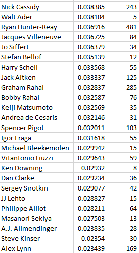 Weirdly, he’s exactly one position above his father in my open wheel model right now: